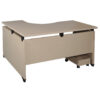 - Phần chân bàn và mặt bàn liên kết với nhau bằng ke nhựa thiết kế cách điệu giúp mẫu bàn văn phòng trở nên thanh thoát, mềm mại hơn.